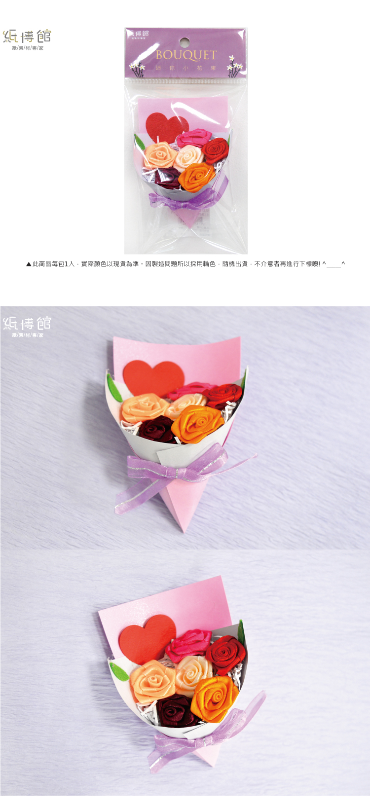 ●適合用於送禮、裝飾、製作吊飾時使用。 ●尺寸:寬約8cm 高約10.5cm ●材質:紙、布 ●花束造型,1入,不挑色 ●注意: 本商品含有小配件,8歲以下幼童須由家長陪同使用 ●保存期限:10年 ※商品會因電腦顏色有所差異,以現貨為準,介意色差者請勿下標 ※若有顏色款式問題,或需大量訂購,歡迎來電諮詢
