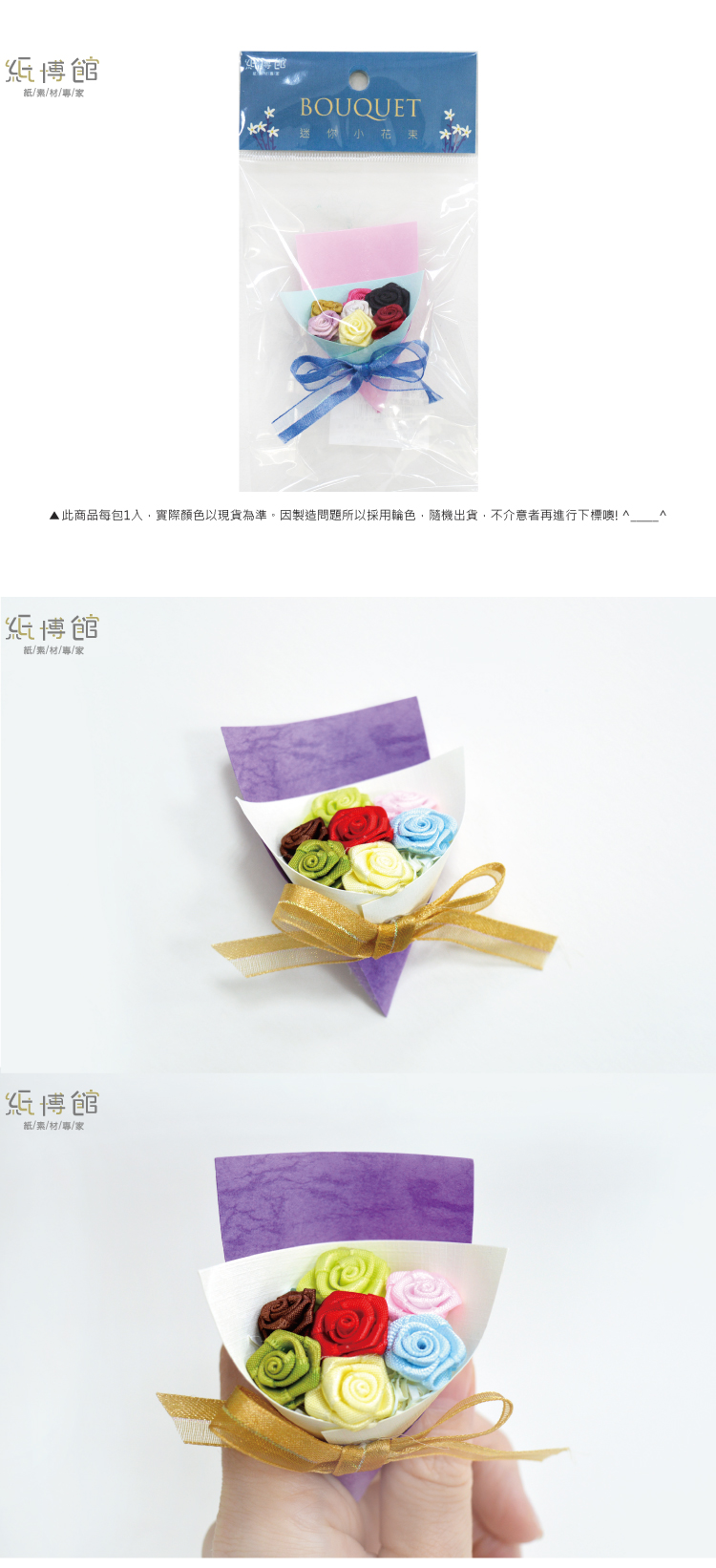 ●適合用於送禮、裝飾、製作吊飾時使用。 ●尺寸:寬約6cm 高約7.5cm ●材質:紙、布 ●花束造型,1入,不挑色 ●注意: 本商品含有小配件,8歲以下幼童須由家長陪同使用 ●保存期限:10年 ※商品會因電腦顏色有所差異,以現貨為準,介意色差者請勿下標 ※若有顏色款式問題,或需大量訂購,歡迎來電諮詢