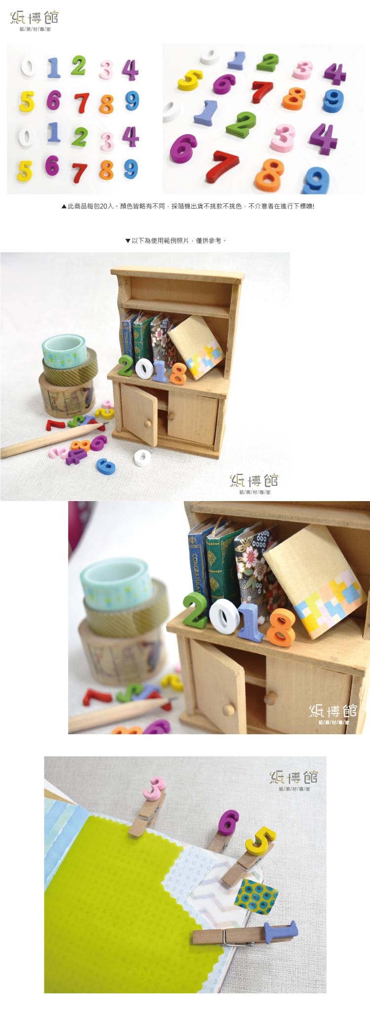 ●適合用於卡片、佈置、裝飾、串珠時使用。 ●材質 : 木頭加工 ●尺寸:約1.2x1.5cm ●此為0~9數字各2入,不挑款不挑色 ●注意:本商品含有小配件,8歲以下幼童須由家長陪同使用 ●保存期限:10年 ※商品會因電腦顏色有所差異,以現貨為準,介意色差者請勿下標 ※若有顏色款式問題,或需大量訂購,歡迎來電諮詢
