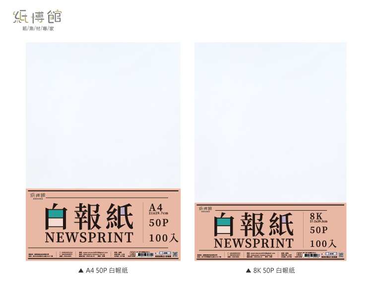 • A4、8K  50g 白報紙(100入)