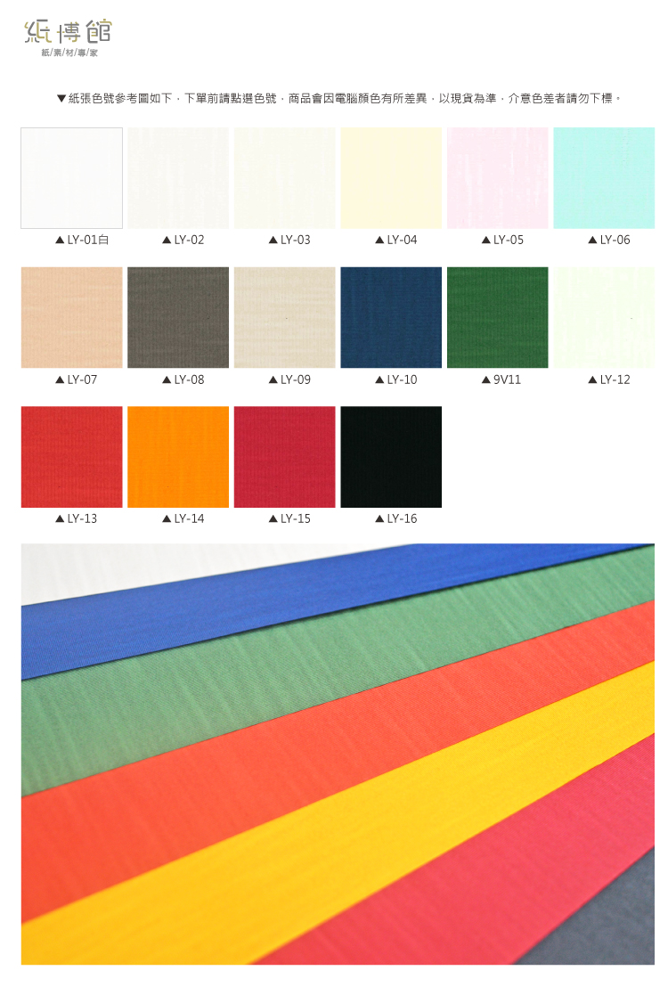 ●適合用於卡片、佈置、裝飾時使用。 ●尺寸:長:29.7cm 寬:21cm ●材質:紙張 120P ●最低訂購量為一包(單色,不可混和),每包25張入,一張6元 ●保存期限:10年 ※商品會因電腦顏色有所差異,以現貨為準,介意色差者請勿下標 ※若有顏色款式問題,或需大量訂購,歡迎來電諮詢