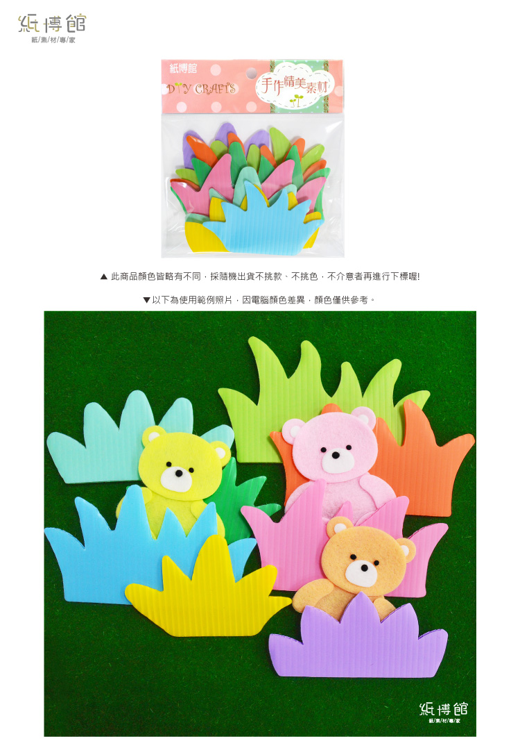●適合用於卡片、佈置、裝飾時使用。 ●1包8片入,採隨機出貨,不挑色,不能接受者請勿下單,謝謝! ●材質:PP板,外觀上呈中空狀 ●PP瓦楞板特色: 1. 材質輕盈、易裁切。 2. 防潮性佳、可直接水洗、可回收。 ●注意: 本商品含有小配件,8歲以下幼童須由家長陪同使用 ●保存期限:10年 ※商品會因電腦顏色有所差異,以現貨為準,介意色差者請勿下標 ※若有顏色款式問題,或需大量訂購,歡迎來電諮詢