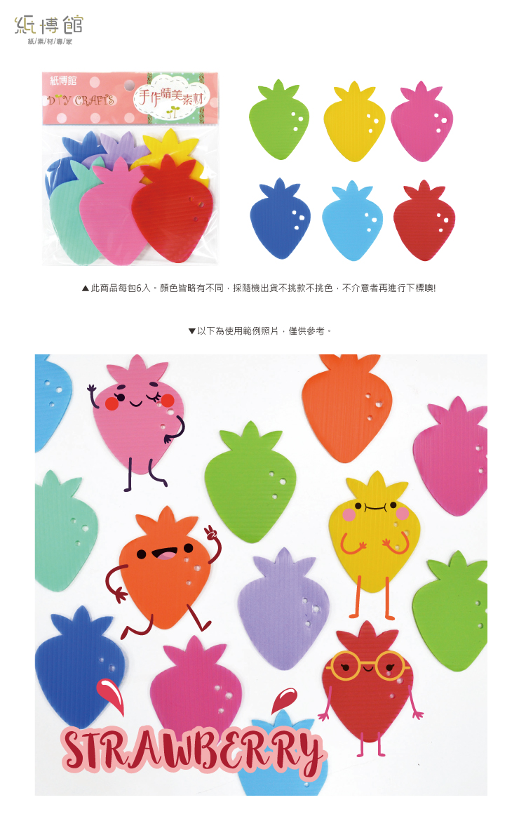 ●適合用於卡片、佈置、裝飾時使用。 ●尺寸:約6.5x8.7cm ●1包6片入,採隨機出貨,不挑色,不能接受者請勿下單,謝謝! ●材質:PP板,外觀上呈中空狀 ●PP瓦楞板特色: 1. 材質輕盈、易裁切。 2. 防潮性佳、可直接水洗、可回收。 ●注意: 本商品含有小配件,8歲以下幼童須由家長陪同使用 ●保存期限:10年 ※商品會因電腦顏色有所差異,以現貨為準,介意色差者請勿下標 ※若有顏色款式問題,或需大量訂購,歡迎來電諮詢