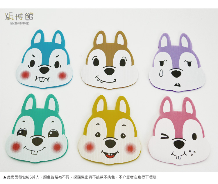 ●適合用於卡片、佈置、裝飾時使用。 ●尺寸:高約8.4cm 寬約7.2cm 厚度約3mm ●內含不同印刷圖案小松鼠,約6片入,隨機出貨,不挑款不挑色 ●材質:PP板 ●PP瓦楞板特色: 1. 材質輕盈、易裁切。 2. 防潮性佳、可直接水洗、可回收。 ●注意: 本商品含有小配件,8歲以下幼童須由家長陪同使用 ●保存期限:10年 ※商品會因電腦顏色有所差異,以現貨為準,介意色差者請勿下標 ※若有顏色款式問題,或需大量訂購,歡迎來電諮詢