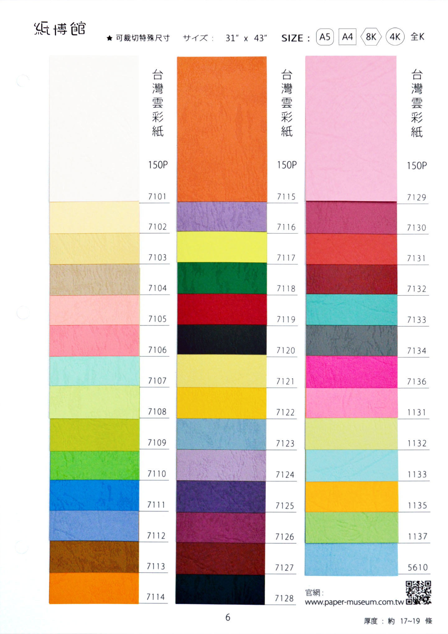 A5-全K 150g 台灣雲彩紙(可挑色)