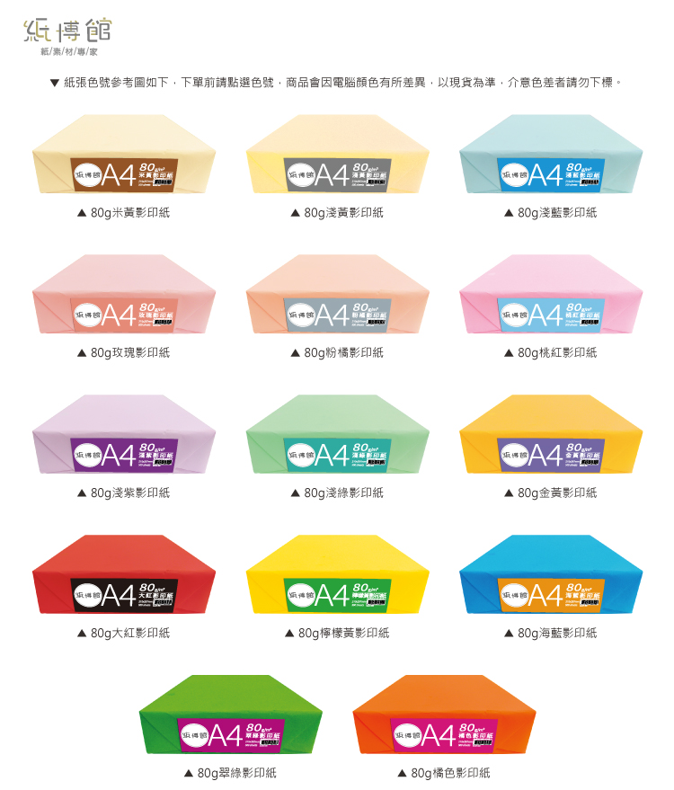 ●最低訂購量為一包(單色,不可混和),每包500張入