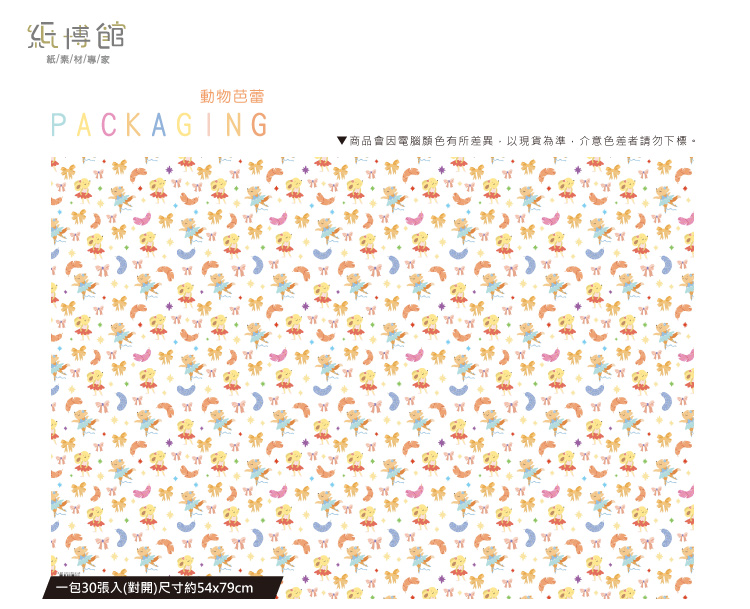 R3902-54 動物芭蕾包裝紙 2K/張(1包30張入)