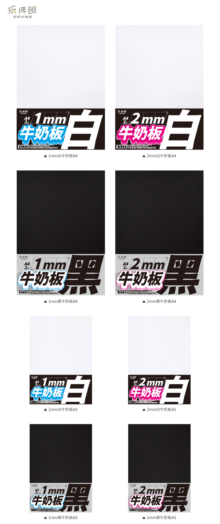 A5~A4 1mm~2mm牛奶板(黑/白)(共8款)